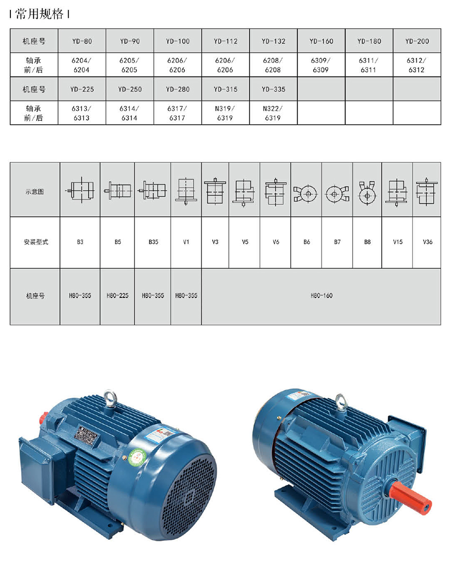 YDT系列電機安裝尺寸與YE2系列電機相同,防護等級為IP54和IP55,有兩速、三速兩種類型,具有高效節能、噪音低、振動小、絕緣性能好、運行可靠、維修方便等優點。